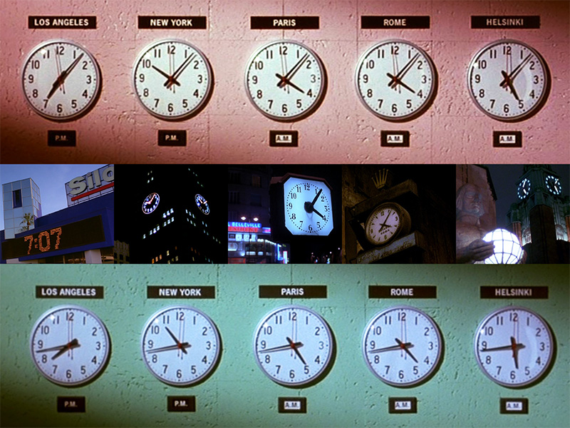 Diese GLEICHZEITIGKEIT wird über einen ZWEIARMIGEN STUNDENZEIGER hergestellt, dessen beide Arme sich im Winkel von 120° (= entspricht einer Differenz von 4 Stunden) gleichzeitig vorwärtsbewegen.
