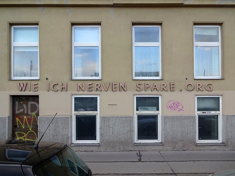 Zwischen Antragsstellung um Bewilligung der geringfügigen Änderung des äußeren Erscheinungsbildes der Fassade (MA 46) und dem Eintreffen des Bescheides lagen 5 Wochen. In dieser Zeit verschwanden weitere 3 Buchstaben (I + R + R) von der Fassade ...